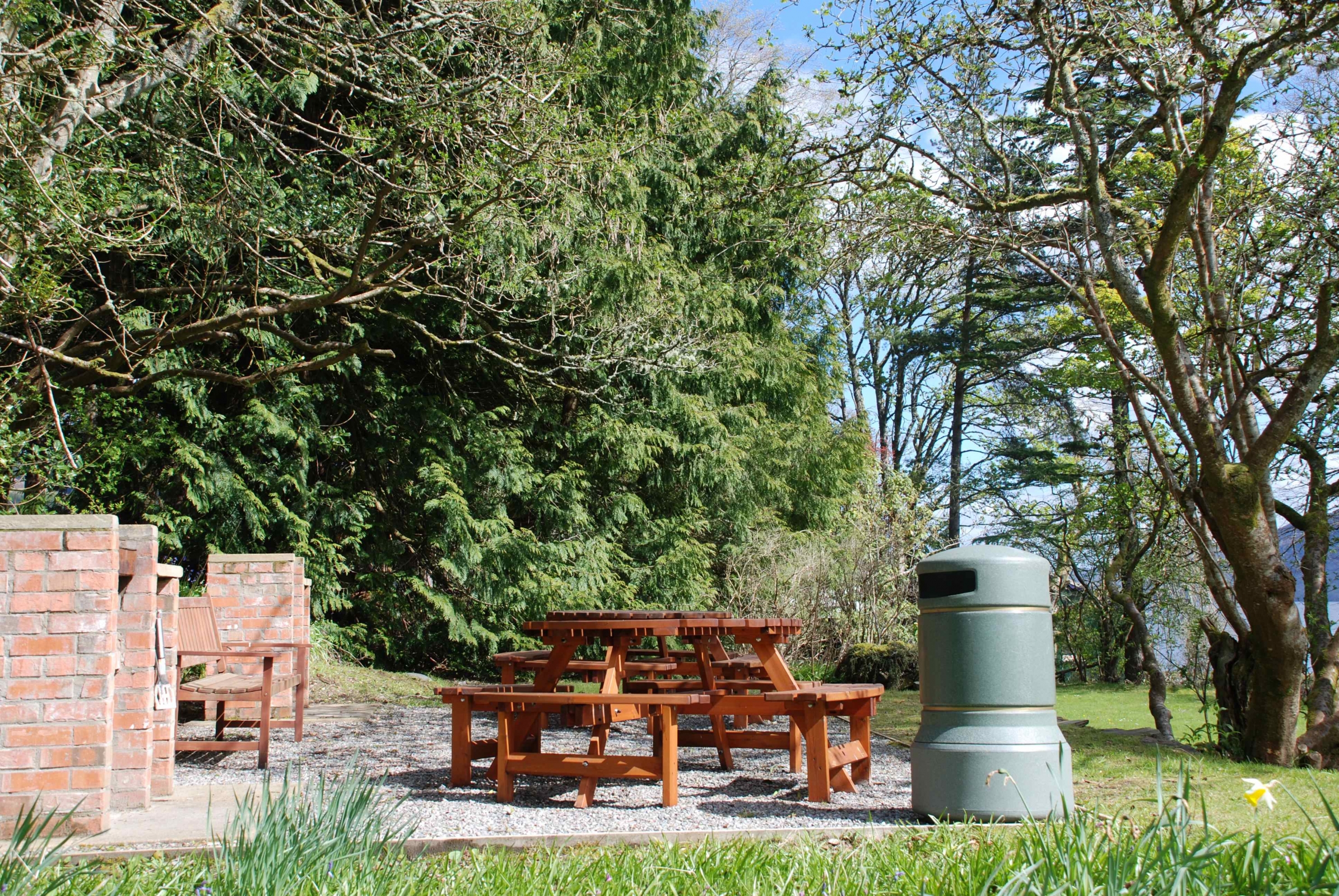 The BBQ area is for the sole use of guests at The Highland Club, and is located in front of the Brother's Wing building on the Monastery Lawn. The BBQ's are of a stone built charcoal variety with wooden seating and tables.
