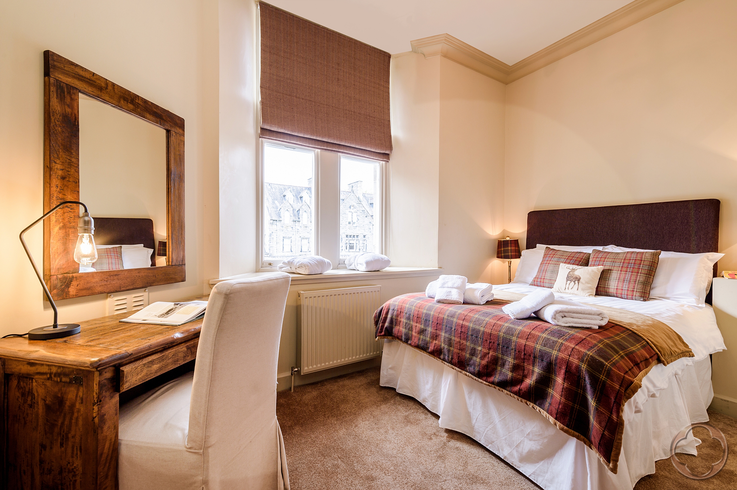 Scriptorium 2, self-catering holiday rental has an abundance of beautiful architectural features with the original stained glass windows and unusual ornate domed ceilings. This property also has the benefit of a private garden and direct access to the Highland Club Spa and Swimming Pool and nearby to the Highland Club Lounge.